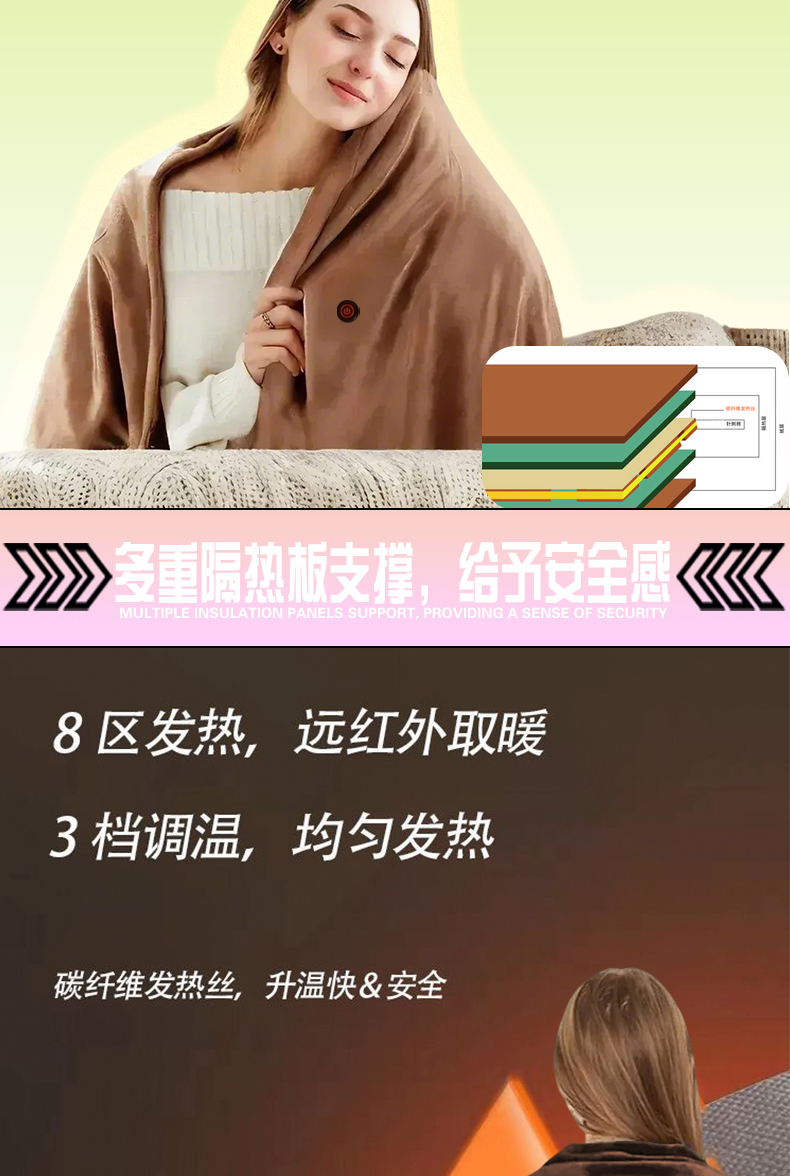 电加热马甲首先一拖五发热片 5V~12V充电宝供电 方便快捷 安全低压发热效率稳定尺寸可定制