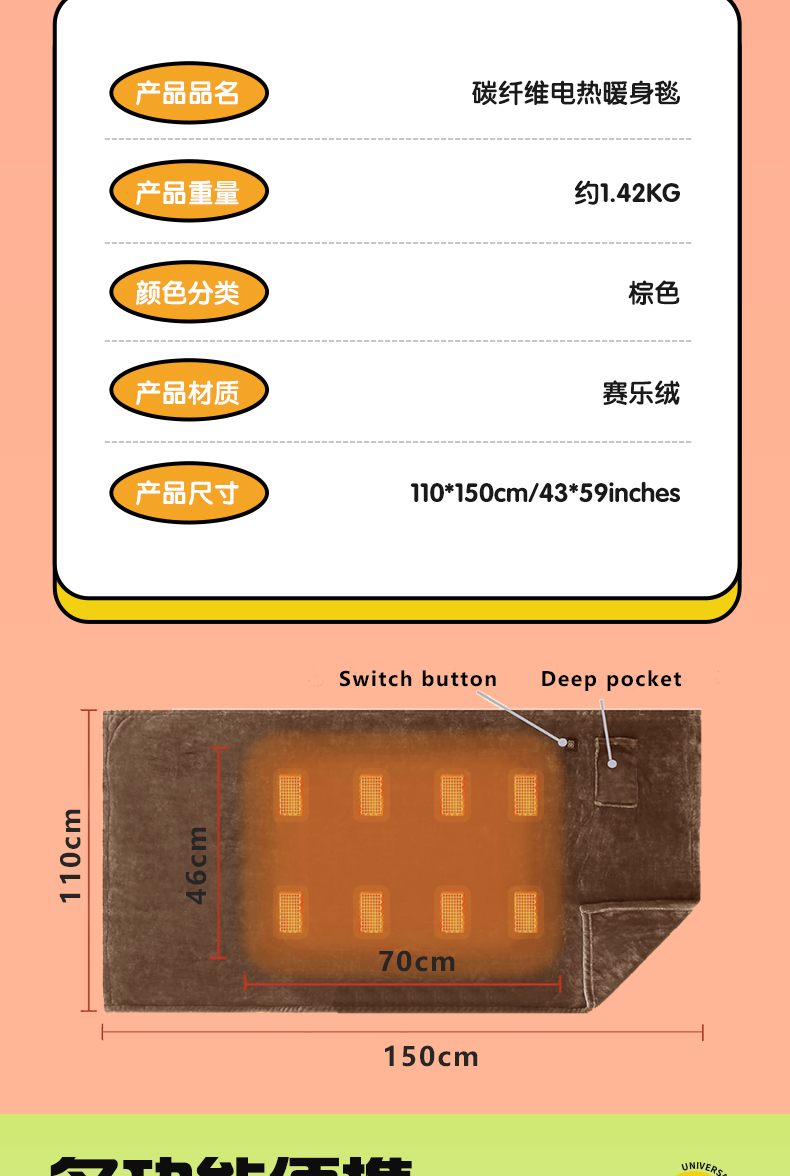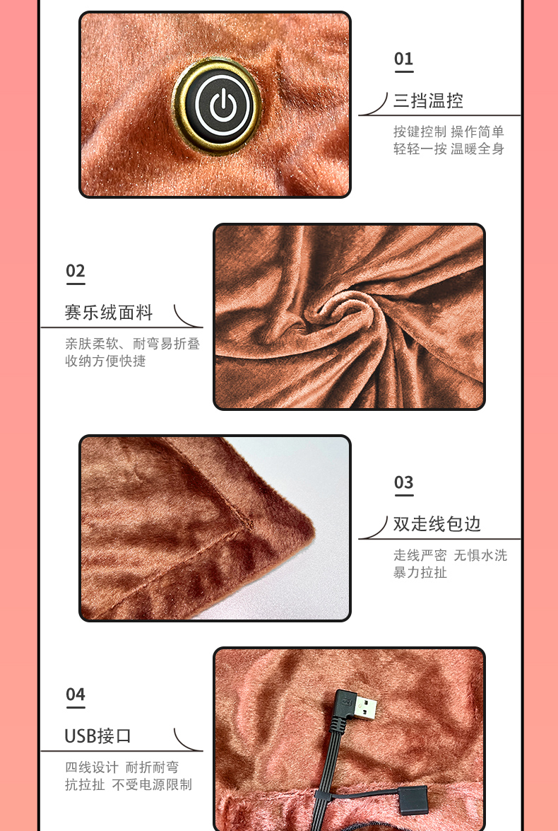 厂家批发一拖四发热片 电加热毯 服装皆可适配 升温快速 四区发热 多种功率可以定制选择