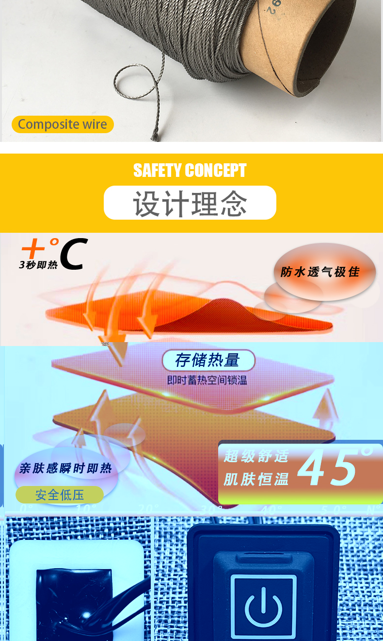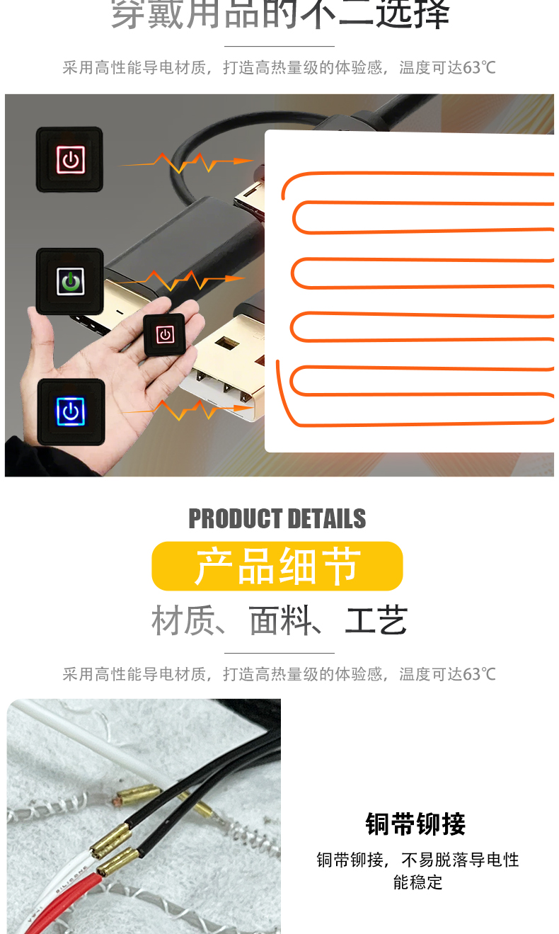 电加热马甲首先一拖五发热片 5V~12V充电宝供电 方便快捷 安全低压发热效率稳定尺寸可定制
