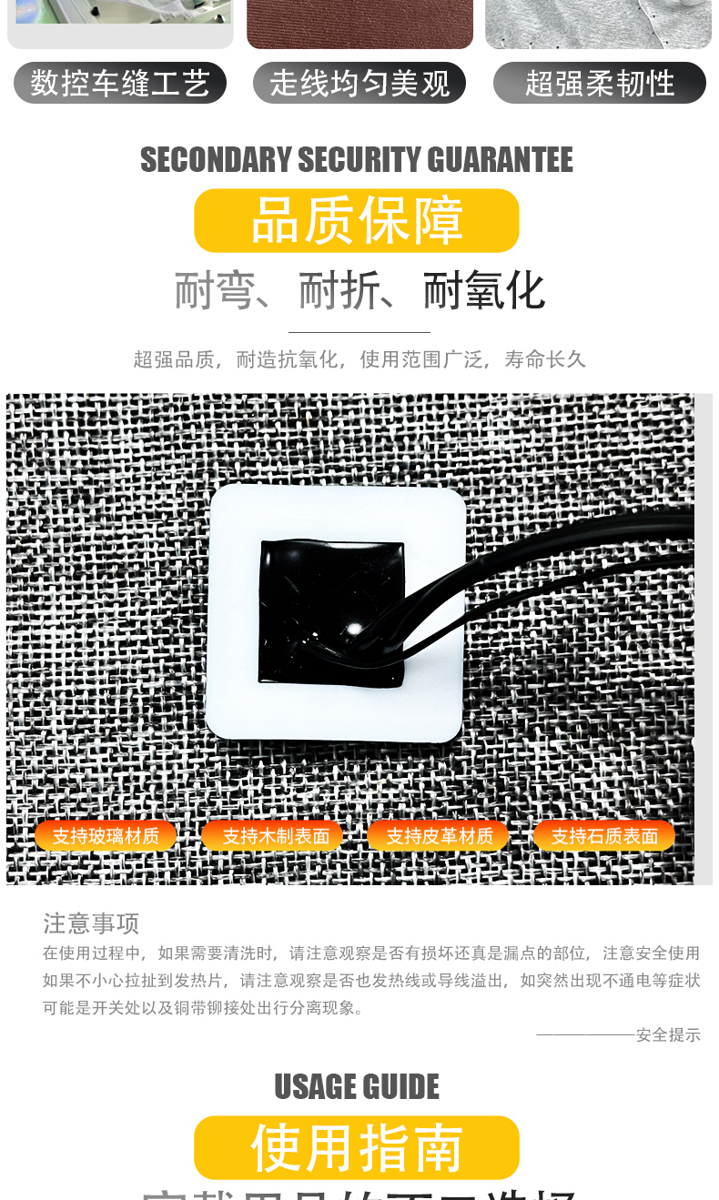 厂家批发一拖四发热片 电加热毯 服装皆可适配 升温快速 四区发热 多种功率可以定制选择